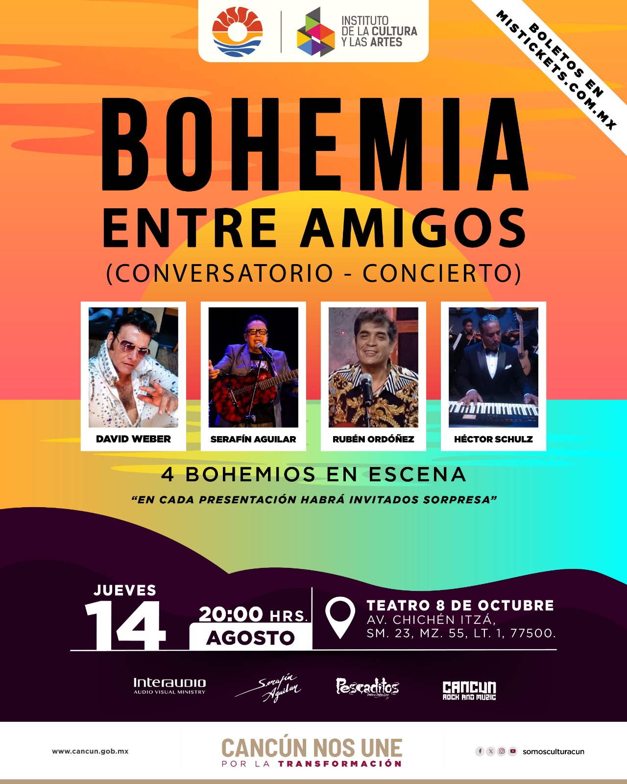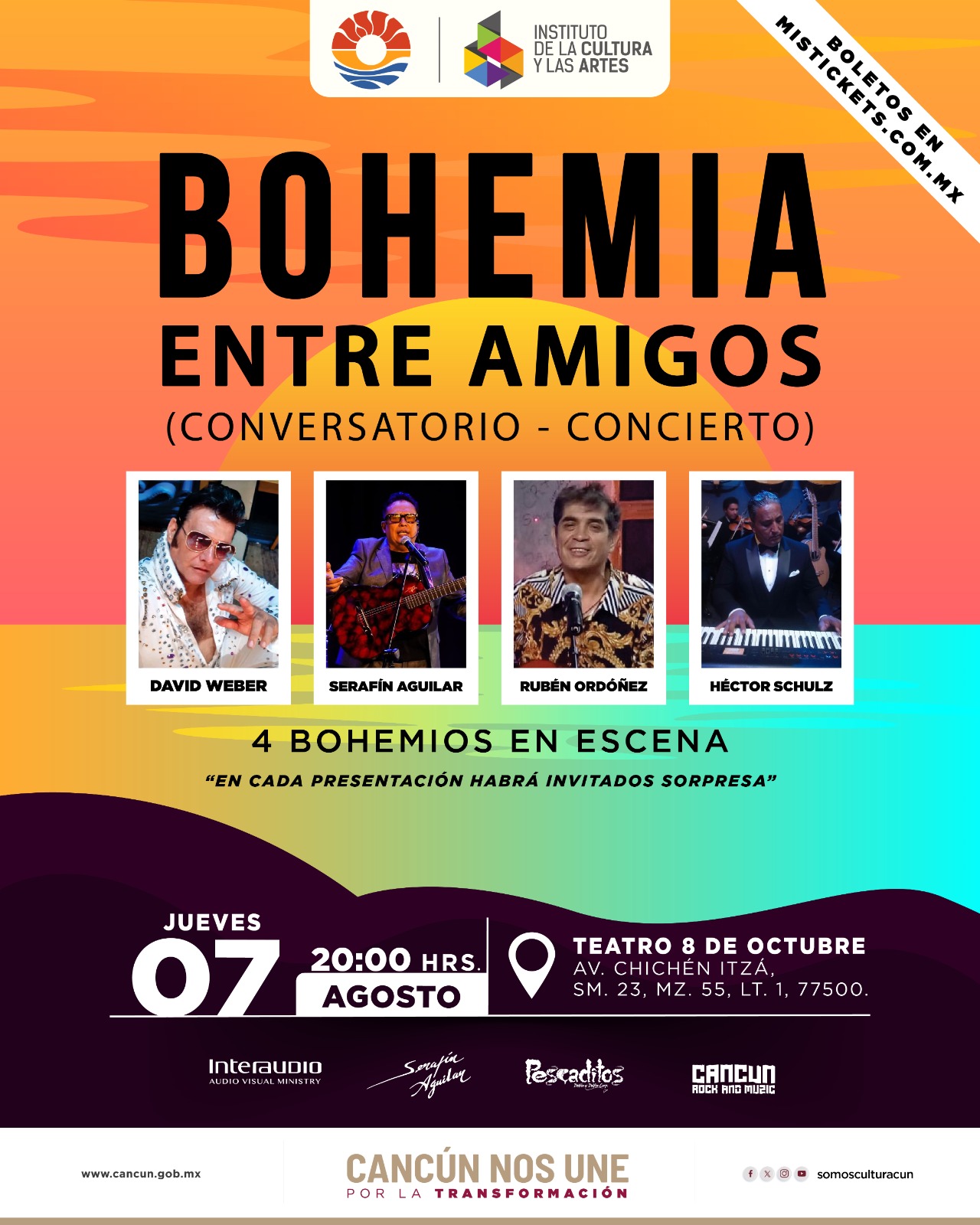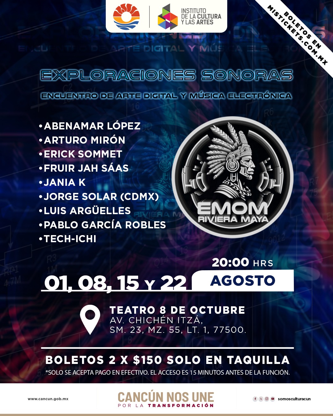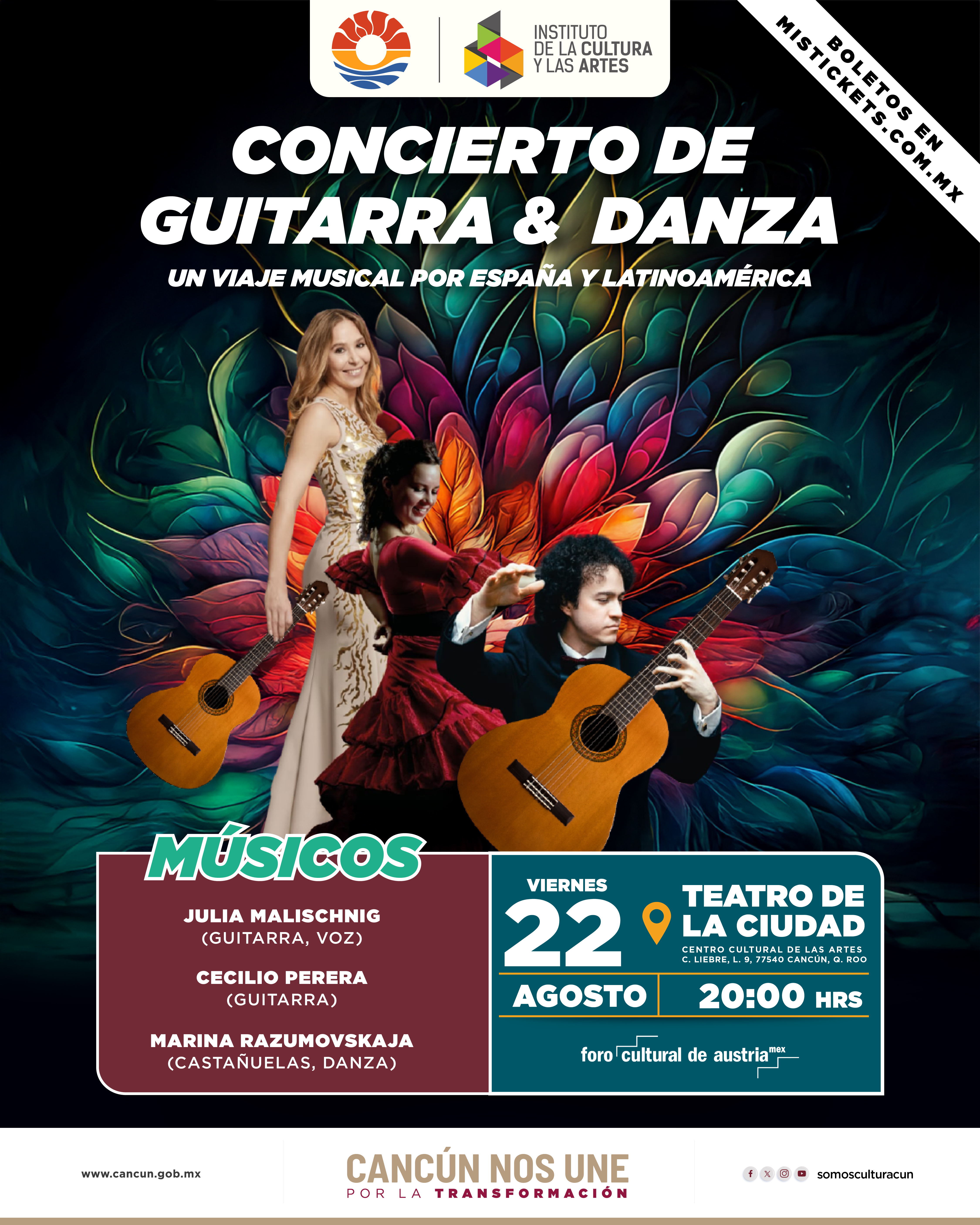 Conoce la cartelera cultural y la oferta de eventos de la ciudad dando clic en los íconos para acceder a la cartelera de cada espacio.